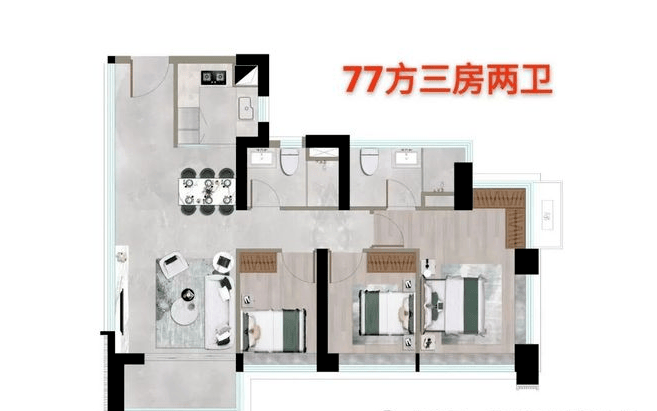 对于三口之家或二胎家庭,经典三房户型则是主流选择。三个房间可以分别作为主卧、儿童房与书房(或老人房),空间分配合理,互不干扰。客厅开间大,适合家庭聚会与孩子玩耍。而对于三代同堂或多孩家庭,豪华四房及以上的大户型则提供了更为充裕的居住空间。多个卫生间的设计,解决了早晚高峰的使用冲突;超大的横厅设计,让家庭活动更加从容自在。