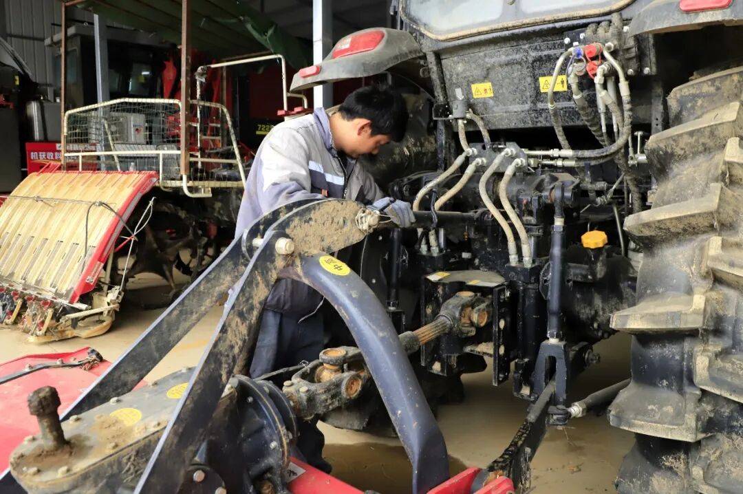 湖口县农业农村局工作人员与农机维修人员一同来到张青乡檀垅村和大垅乡马步村,主动上门为农户提供农机检修服务。在现场,维修人员对拖拉机和联合收割机等主要农机具进行了细致检查与维护,更换磨损零部件、添加润滑油,排除潜在故障,确保农机具“健康”上岗。
